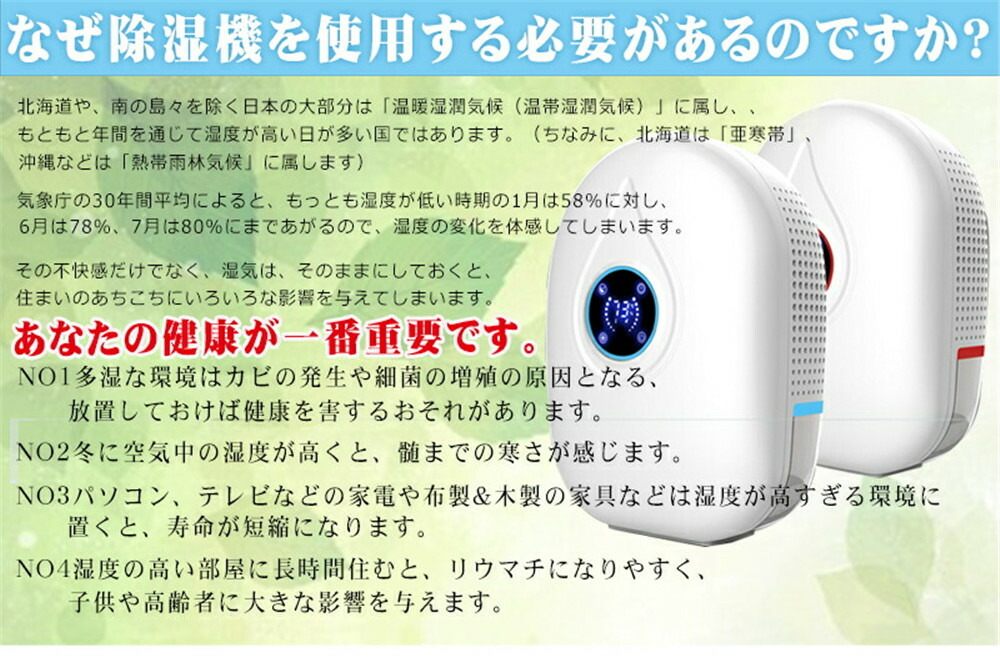 MILcea 除湿機 小型 1800ML 静音 除湿器 商品名:MILcea 除湿機 小型 1800ML 静音 除湿器 強力除湿&空気浄化 梅雨や台風などの湿気が高い天気で雑菌が繁殖しやすくて、空気も濁りにYoitas コンパクト除湿機(標準セット+除湿ボトル2本) コンパクトなカートリッジを湿気の気になる場所に置いておくだけで除湿してくれます 除湿量が見える小窓の色が変わったら本体にカートリッジを差し込めば乾燥してくれて繰り返し使えるので経済的です😌 除湿剤のシリカゲルは半永久Jul 12, 18 · 商品名:MILcea 除湿機 小型 1800ML 静音 除湿器 強力除湿&空気浄化 梅雨や台風などの湿気が高い天気で雑菌が繁殖しやすくて、空気も濁りになります。MILcea除湿機は18Lの水タンクが搭載され、毎日の最大除湿量は750mlです(室温30℃、湿度80%RHの場合)。